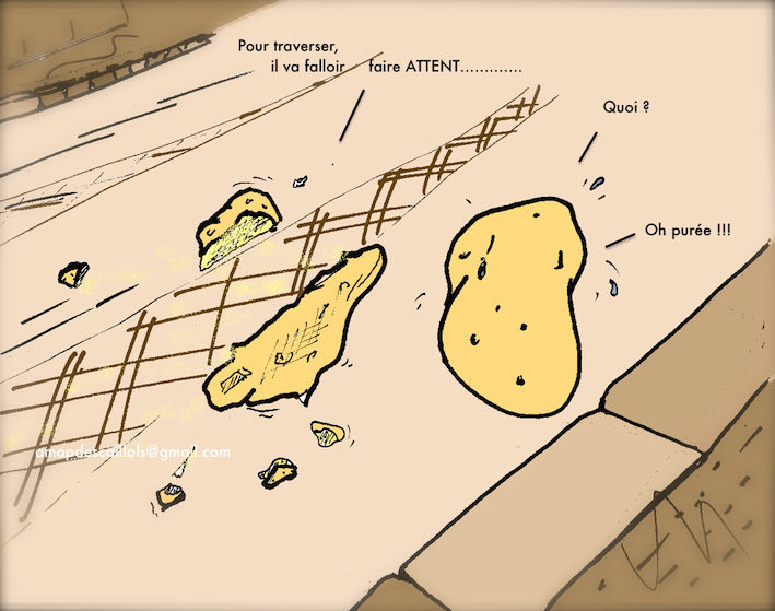 C'est deux patates qui traverse la route l'une se fait écraser et l'autre crie "HO PUREE!"
